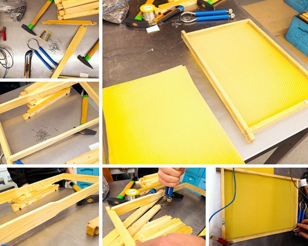 Arkusz węzy (czyli cienkiej płyty z wosku z wytłoczonym wzorem komórek) umieszcza się w ramce i delikatnie wtapia w druty przy użyciu transformatora lub podgrzewacza. Dzięki temu węza stabilnie trzyma się konstrukcji.